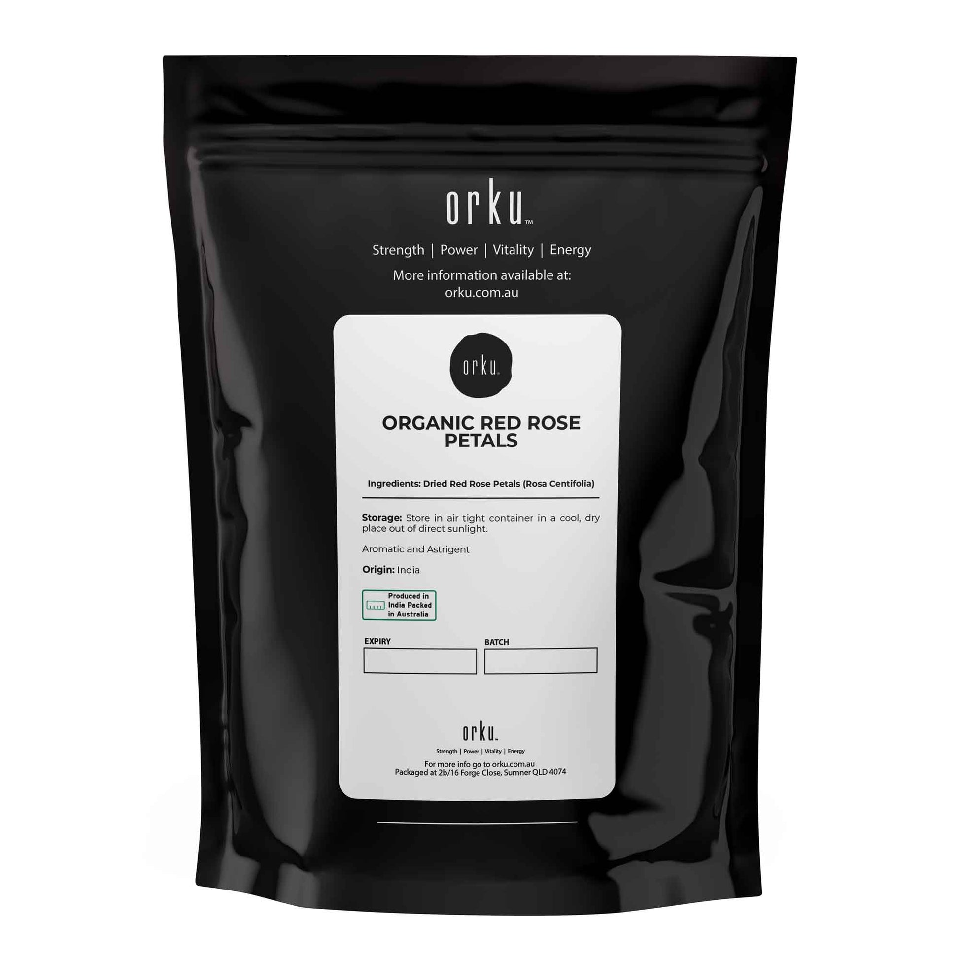 - 50g Red Rose Petals in resealable bag.